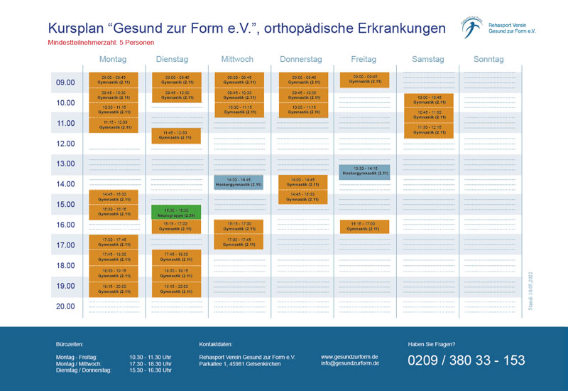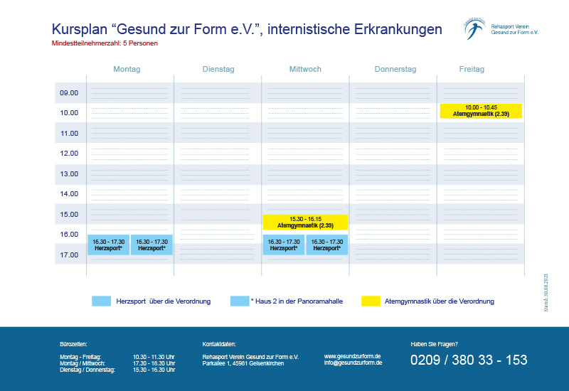 ACHTUNG: Aktuell finden nur ärztlich verordnete Kurse statt. Alle Kursmitgliedschaften ruhen derzeit noch.